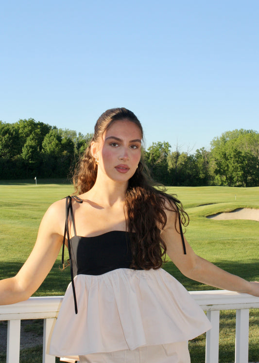 Country Club Flared Top - Cream and Black