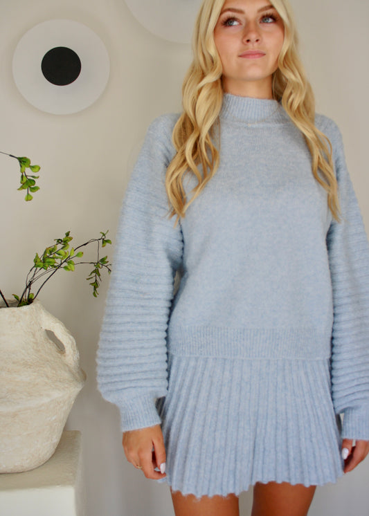 Gilmore Soft Knit Pleated Skirt - Baby Blue