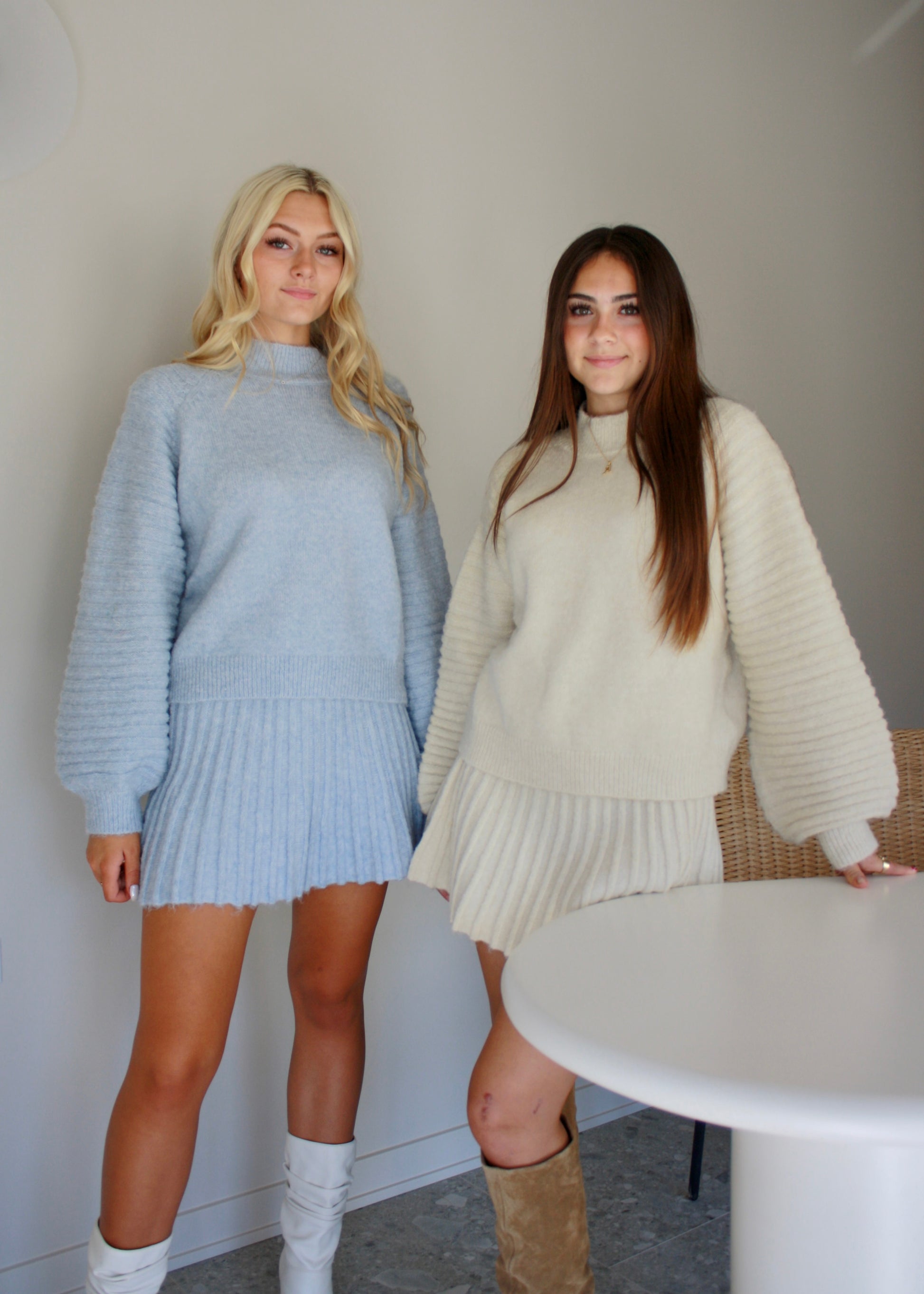 Gilmore Soft Knit Pleated Skirt - Baby Blue